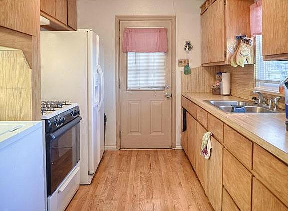 Cute 3 bedroom house. Newer roof and AC unit. Nice galley kitchen open to the dinning area. Large Back yard with a large storage building. A must see!