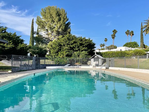 Well decorated, renovated, and clean townhome in peaceful 55+ community. FURNISHED with everything you need to live comfortably. Large bright windows and sliding doors throughout. Peaceful patio overlooking green hills and cypress trees. Two heated pools and a tennis court in this quiet community. Plentiful fruit trees, beautiful landscaping, and shaded parking.