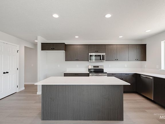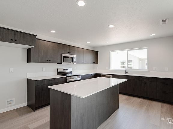 Feel enriched in your brand new home located in Kuna, Idaho! The Sundance 2710 floor plan offers all the space you desire. Be delighted on the main level by the modern kitchen area, dining room, and expansive living room. The kitchen comes with stainless steel appliances and stylish solid surface countertops, adding both functionality and aesthetics to the kitchen. A main level bedroom is ideal for guests or a home office. Upstairs, the other 4 bedrooms and an additional loft space await. The primary suite beckons as an oasis of relaxation with its soothing soaker tub and a remarkable walk-in closet. Bedrooms 2, 3, and 4 upstairs are thoughtfully laid out. The open loft area is perfect for a second living space, game room, or office. Photos are of the actual home!