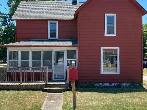 CLASSIC 1.5 STORY HOME ON 1.03 ACRES IN TOWN! Includes 5+ bedrooms, 1 bath, eat-in kitchen, with breakfast nook, main floor bedrooms and laundry! Updated kitchen and bath, new shingles (2020), water heater in 2013. Bright and airy enclosed front porch, deck in back. 20'x20' detached garage with newer roof. Beautiful lot with plenty of space for any kind of yard games, gardening, extra building placement...you name it! Walking distance to schools, gas stations, stores etc. (Property is being sold as is)