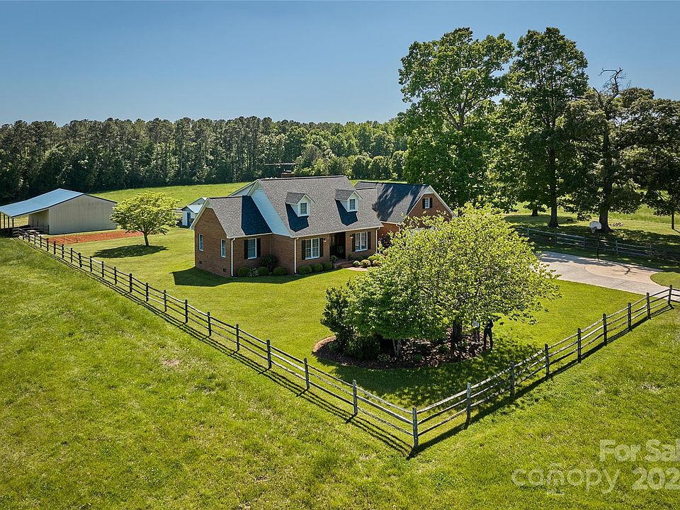 Bring your horses, livestock, pets and green thumb. 37 acres with a beautiful two-story brick home. Primary ensuite on the main, 2 bedrooms, full bath and large bonus room on the upper level. Just in from the two-car garage and workshop is a drop zone, laundry/utility and half bathroom. The heart of the home is a spacious kitchen with bay window casual dining area and a nice flow into the den with a gas log fireplace. Relax on the idyllic screened in porch or sit by the fire pit on the patio overlooking the multiple sheds, barn, garden and flowerbeds. Formal dining and living areas provide for more entertaining options and the upper-level bonus room is a great flex space. Fully usable acreage that is crossed fenced for multiple uses, barn has two stalls in place with plenty of room for more. Creek runs along the back of the property line. This location is very private yet minutes to Uptown Shelby and under an hour to Charlotte International Airport and Tryon Equestrian Center.