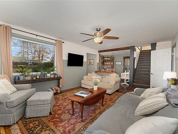 Brick cottage on a .5 acre lot with a cozy welcoming curb appeal. This charming home features towering mature trees, a spacious and open entry, and a defining dining area with built-in tables and shelves. Have coffee overlooking an open main living area with hardwood floors and a fireplace. There is a main-level primary suite with a tile walk-in shower, tile floors, and a double vanity in the primary bath. The main level also offers a covered porch with arches and a sunroom off the kitchen which leads to a patio with a firepit area. The laundry is on the main level of the playroom/flex area. The second floor offers 2 bedrooms, a full bath, & an office. The potential for expansion in the basement with possibilities. Imagine an in-law suite with a separate entry with a driveway that goes all the way around to the basement level multi-car (tandem) carport (great for rainy day gatherings or adventures) and a single-car garage. Other updates are replacement windows & a new half bath.