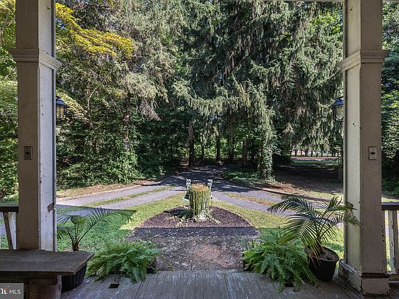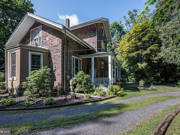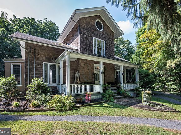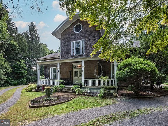Nestled on 1.5 acres of landscaped gardens and framed by mature trees, this lovely home was built in 1860 and offers a unique blend of historic charm and modern comfort. With its striking stone siding and timeless architecture, this home stands as a testament to craftsmanship and enduring style. The circular driveway leads you to the welcoming covered front porch. Once inside you'll find a grand foyer adorned with classic hardwood floors, crown molding, and an ornate stairway to the second floor. Through the french doors to the right is the study, to the left is the formal living room and straight ahead is the formal dining room. The spacious living room offers tray ceilings, ornamental fireplace with a wood mantel and full size mirror, curved archways, sculpted woodwork and newer windows. The dining room is spacious for entertaining, features hardwood flooring, crown molding, a built-in china cabinet and provides access to the rear covered porch. Swinging doors open to a spacious kitchen with hardwood floors, a built-in baker’s cabinet, granite counters, stainless steel appliances and a striking brick accent wall. There is a large rustic mudroom with stone walls and decorative ceiling beams and a laundry area that is located off the kitchen. This space also leads to the exquisite first floor full bath. This bathroom opens with a pocket door, it is large and boasts an oversized walk-in shower with multiple shower heads, a mosaic tile floor design, and subway tile, walls adorned with shiplap. Heading to the second level there is a primary suite that includes a spacious bedroom with a walk-in closet, newer windows, a large primary bathroom with a porcelain clawfoot tub, a large dressing area and generous closet space. There are two additional bedrooms both with a walk-in closet and a combination of newer wide plank floor and hardwood flooring. Bedroom 3 offers bay windows and crown molding and a linen closet. The third floor houses bedrooms four and five. The hardwood floors run throughout the home along with beautiful woodwork and trim, crown molding and ornate architecture. Outside there are additional side and back porches that provide ample space for outdoor entertaining and relaxation. Driveway circles the home. The oversized two car garage is located in the rear of the property. Utilites and mechanics are housed in the full basement. This property is a rare gem, offering a unique opportunity to own a piece of history while enjoying the comforts of modern living. Don't miss your chance to make this enchanting residence your own.