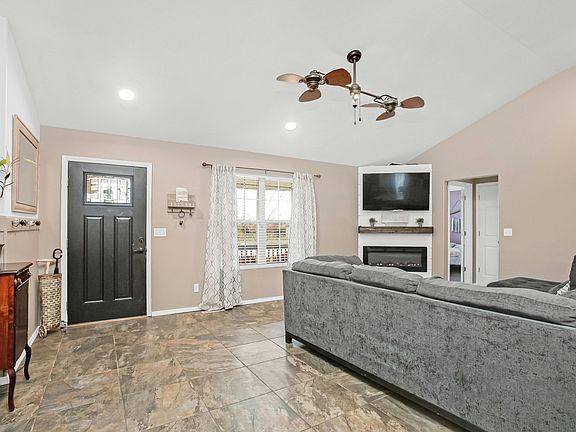 This home feels like new! Inside is updated with the farmhouse style that everyone loves! Living room offers vaulted ceiling a cozy fireplace with shiplap and new ceramic tile. Beautiful updated kitchen with white cabinets, farmhouse sink, open shelving and a stainless range hood. 3 bedrooms and 2 baths and 1,476 square feet. 2nd bath also finished with shiplap. Large master with walk-in closet and french doors leading out onto the deck. Master bath has a walk in shower with separate soaker tub. Off the dining area is an enclosed porch/sunroom that leads out to the large deck and to the privacy fenced back yard with built in firepit. Other updates include a new electric heat pump. This home has been well maintained and is ready for you to move into!