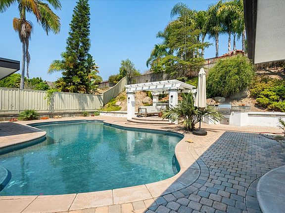 This Specular, single-level home in Carlsbad is a must-see! Owner pays all utilities, landscaping and pool maintenance. Greet your guests through our custom front door that opens to a grand foyer with a skylight. Spacious 3-Car Garage! Keep cool and save with Solar and enjoy a NEW AC system! Bright and open floor plan with lots of natural light and contemporary finishes. Living and family room boasts dual sided fireplace and huge vaulted ceilings in the family room. Newer waterproof flooring throughout living areas. Custom kitchen features modern white cabinetry, updated appliances, tile backsplash, and breakfast bar. Plenty of room for entertaining in front yard with low maintenance turf. Beautiful dining room with easy access to the backyard through the French doors. Large Primary bedroom with private entrance to patio and ensuite bathroom including dual sinks, vanity, huge glass shower, free-standing tub, and three separate closets. Sizeable second and third bedroom with shared bathroom including dual sinks and shower. Fourth bedroom with private access to the backyard and an updated ensuite bathroom. Stunning backyard with pergola and an in-ground pool, perfect for relaxing or entertaining friends and family. Freshly painted inside and out. Fully gated and very private. Great location, near the La Costa golf course, schools, shopping, popular restaurants and much more Owner pays landscaping and pool maintenance. Tenant pays water, sewer, trash and SDG&E.