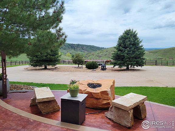 Gorgeous horse property in the foothills just west of Berthoud. This property has it all! Lovely updated ranch home, fantastic horse/livestock setup, 5-stall barn, large outbuilding, chicken coop, riding arena and plenty of land and privacy. Peaceful outdoor living; stamped concrete patio, large natural stone gas fire pit, fenced backyard to keep pets and kids safe, sprinkler system, concrete curbing, large veg garden, south facing driveway. Wildlife abounds with deer, turkey, bobcat & more. Home features an open floor plan, hardwood, new carpet and tile and efficient pellet stove. Updated kitchen has Tharp hickory cabinets, custom island, new quartz and granite counters, updated tile flooring, gas stove, two ovens & large pantry. Spacious primary has 5-piece bath, walk-in closet and custom patio door opening to new composite, maintenance-free deck. Huge office or flex space currently used as two offices. Finished basement with large family room, bedroom, bonus room, full bath and kitchen area. Great property for horses, cattle, or other livestock- including 5-stall barn, plenty of hay storage, nice tack room, fenced individual runs, 40 x 60 corral area, 12 x 24 loafing shed, and fenced 100' x 200' riding arena. All runs, corrals & arena surrounded by "continuous fence". All but about 6 acres is fenced and cross-fenced. Attached garage has built-in storage cabinets, new garage door and opener, insulated and dry walled in 2021. Detached 26 x 30 outbuilding/garage is fantastic. Includes 2-car garage, and large storage room which could be a 3rd car garage. Dry walled and epoxy flooring just done in 2022. Two additional storage areas off both sides of the building for outdoor equipment, etc. Large concrete pad for RV or boat parking. Conveniently located just a short drive to Berthoud, Loveland, or Longmont. And very close to the TPC golf club. Please call agent with any questions about this property.