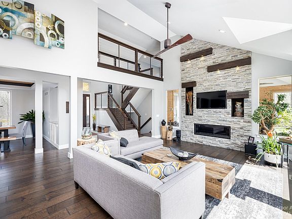 Escape to a true oasis in this immaculate 3130 SF, 3 BR, 3.5 BA custom home w/11.5 acres boasting panoramic views from every room! Inside, find refined finishes throughout including the floor to ceiling cultured stone fireplace, engineered hrdwd flooring & 16' floor to ceiling windows which flood the great rm in light, as well as an amazing indoor atrium w/koi pond that spans the full height of the home! True chef's kitchen offers large center island, granite counters, & high-end appliances. Wow your guests w/the cultured stone feature wall & ambient lit custom cedar plank tray ceiling in formal dining. 1st-floor primary boasts vaulted ceiling, attached deck, & ensuite BA w/2-person shower, heated flrs, bidet & quartz counters. Upstairs, find an add'l bdrm & 2nd BA w/tile flooring & granit granite counters. Full walkout bsmnt w/brand new 3rd bath & large bdrm, family rm, & space to put your finishing touches. The property boasts lots of native plantings, rain garden, large pond w/waterfall, & chicken coop. Add'l highlights include new Wallside windows w/ transf 35 yr warranty, laundry rm w/dog wash station, tankless water heater, 3 car garage w/240 outlet for EV hookup, H20 softener w/iron filter and R/O system, & whole house generator., Primary Bath