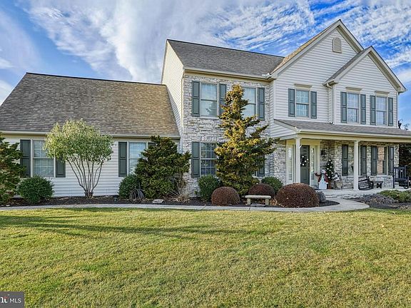Better than new! This beautiful well maintained home is ready for new owners. Located on a prime corner lot with extensive landscaping, two paved patios and a large stick built storage shed with electric and it even matches the home exterior! Shutters on the rear of this home are another extra. Step inside the front door to the foyer where you will find gleaming hardwood floors and custom picture frame wainscote. The spacious country kitchen has lots of recessed lighting, tile back splash, Bosch range, microwave and dishwasher, pantry and built-in desk area. Adjacent to the kitchen is a first floor laundry room with a utility tub. The heated sun room is gorgeous with a stacked stone gas fireplace, lots of windows for natural light and a vaulted ceiling. The focal point of the family room is an entire wall of stacked stone with a raised hearth gas fireplace. French doors open from the living room to the family room. Large master bedroom has crown molding, vaulted ceiling , spacious walk-in closet , whirlpool tub and comfort toilet. New gas furnace and air conditioning unit in 2018. Lower level has a cedar lined storage closet, superior walls, rough in for a full bath, bilco door and E Z Breathe whole house ventilation system. Over sized two car garage with turn around driveway. $195/year HOA fee covers common area maintenance and community lights. Easy access to Routes 322 & 283, I-83, I-81.