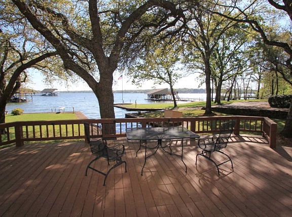 GB-7307. PRIVATE SETTING - 2.54 ACRES - HEAVILY WOODED - BEAUTIFUL WATER VIEW FACING EAST - CHICAGO BRICK EXTERIOR, COVERED PORCHES, BALCONIES & EXTENSIVE DECKING - OPEN LIVING/DINING CONCEPT WITH WOOD FLOORS - GRANITE KITCHEN COUNTERS, ISLAND EATING/SERVING AREA, DOUBLE OVENS & SINKS, WARMING DRAWER - 2 LIVING AREAS WITH VAULTED WOOD CEILINGS & BRICK FIREPLACE- GAMEROOM HAS BEAMED CEILINGS & TILE FLOORS- MEDIA ROOM OPENS TO COVERED BALCONY - BOATHOUSE WITH PARTY DECK & COVERED SEATING ACCOMMODATES 2 BOATS & 3 PWC