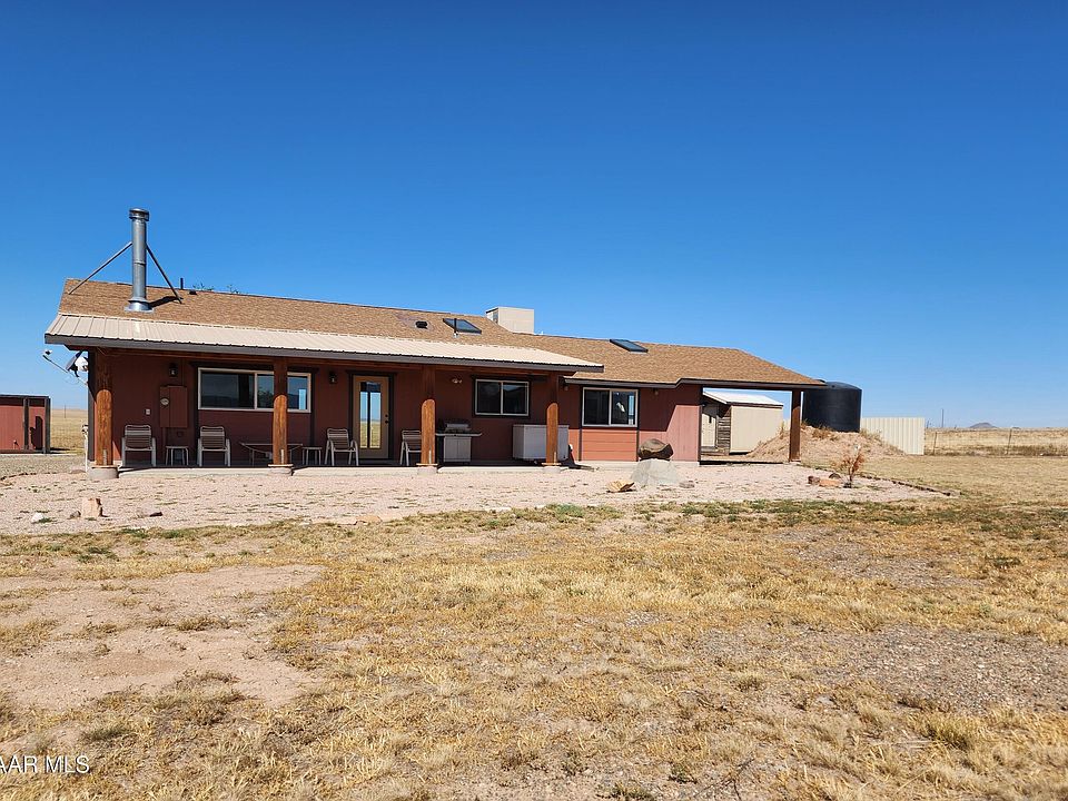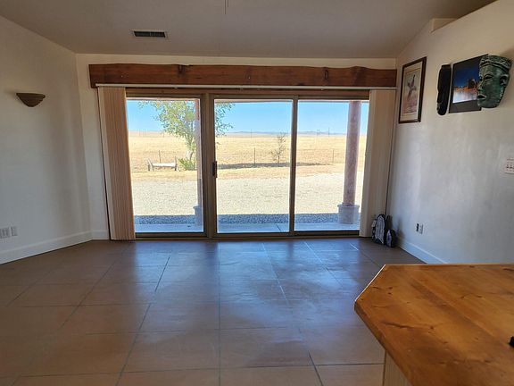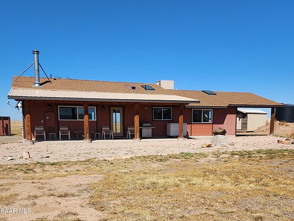 Wild Antelope visit this peaceful private property often. Large lodge pole and beam covered porches front and rear for outside space entertainment, approx 600 square ft .Extra large drive on mechanics auto/truck vehicle lift for the mechanic enthusiasts (may be included, subject to conditions)Lots of outbuilding storage, 3 outbuildings and a connex container, lots of shelving and workbenches, approx 848 sq ft combined. 4 vehicle spaces of covered carport parking to keep your RV's and cars out of the sun.Backs up to private ranch land and offers gorgeous views of Granite Mountain, Glassford Hill, Mingus Mountain and the surrounding valley. Home offers 2 bedrooms, 2 baths with custom acrylic stained concrete floors in the main living area.