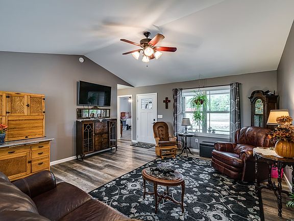 Super handsome custom (2018)new construction w/rich deep gray siding trimmed with crisp white makes this curb appeal just sing! Popular contemporary craftsman style is sure to please w/creative combo of stone, brick, shake & plank. Interior floor plan is your favorite (vaulted ceiling) w/open concept living, dining, kitchen (Samsung upscale appliances, custom cabinets, bar seating, luxury vinyl, gray scale paint) w/split design-go right to bedrms. 2 & 3 sharing a spacious bathroom, go left to Master suite w/a fabulous walk-in closet, & double vanity. Bonus1/2 bath for guests, separate laundry room and two car garage finish off home amenities. Exterior features bonus gazebo/patio area, outbuilding & aluminum fencing. Extra concrete driveway pad for RV or vehicle. Spacious oversize lot.Beautiful home!