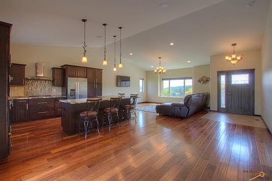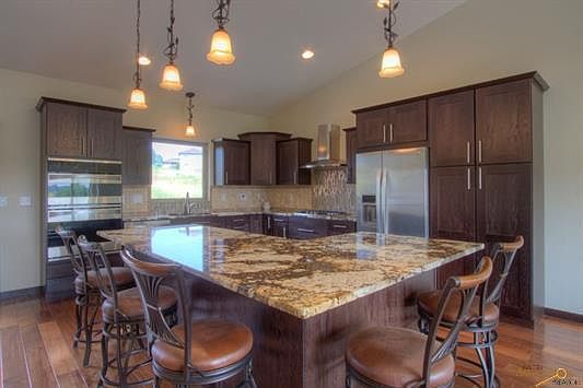 Situated on almost half an acre overlooking the 11th tee box in the desirable Red Rock Estates this 4 bedroom (1 NTC office), 3 bath home has all the style and high-end finishes you are looking for. The main level features the living room with vaulted ceilings, dark wood flooring, and a gorgeous kitchen boasting granite countertops, glass-tile backsplash, expresso cabinetry, and high-end stainless steel appliances. The top level includes the master suite with walk-out deck, walk-in rock/tile shower, jetted tub, and over-sized walk-in closet, as well as 2 additional bedrooms. The spacious basement with fourth bedroom/office, family room and custom built wet bar provides a perfect space to entertain. The .47 acre lot with sprinkler system has been beautifully landscaped. Enjoy the gorgeous views from two decks/patios areas with gas grill hook-ups. The home also features a surround sound speaker system throughout the inside and outside of the home.