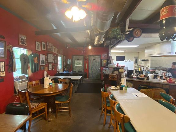 This little restaurant sits on 10 +/- acres with paved road frontage. Features, smoker, grill, table/chairs, etc. Many opportunities to expand such as adding cabins or RV hookups/camping. There is also space to build yourself a beautiful home.