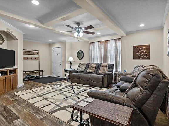 Charming 3-Bedroom Modular Home on 5 Wooded Acres! Discover the perfect blend of comfort and privacy with this well-maintained 1,667 SF modular home nestled on 5 serene wooded acres. This 3-bedroom, 2-bath home features an inviting open-concept living area with abundant recessed lighting, creating a bright and airy atmosphere. The spacious kitchen offers ample counter space and storage, perfect for entertaining. Outside, you'll find a detached garage/shop, ideal for projects or extra storage, plus a storm shelter built into the ground for added peace of mind. Enjoy the beauty of nature while still being conveniently located just 10 miles from the Pubic Square. This home is exceptionally clean and move-in ready—don’t miss this rare opportunity to own a piece of tranquility! Schedule your private showing today!