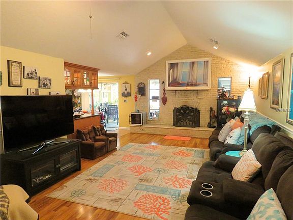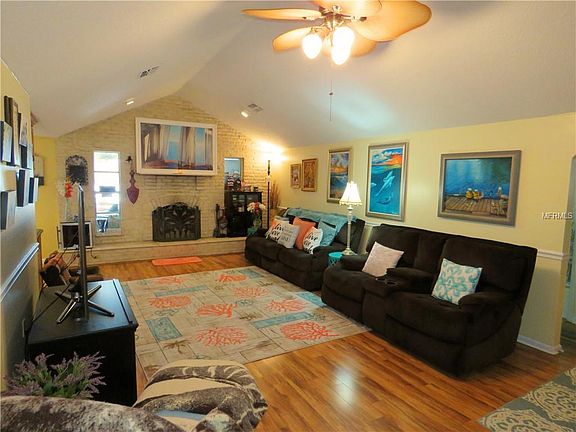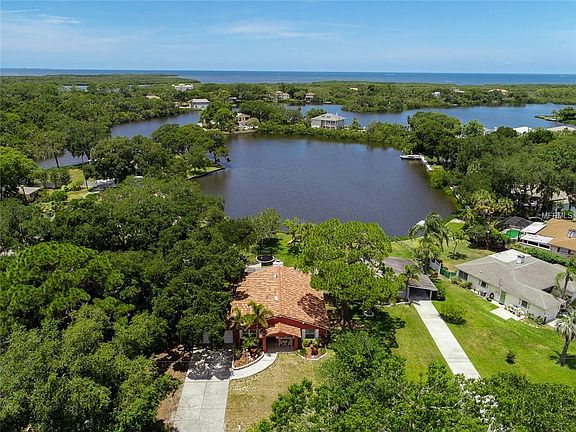 AMAZING VIEWS! This home boasts the most gorgeous sunsets as it is situated right on the banks of Oyster Bayou! Old Florida living is yours as you Paddleboard or Kayak through the Wigwam Creek. Gulf Access is possible for jet skis, kayaks or other low-draft boats. Updated 4 Bedroom, 2 Bath home with Den is nestled on just under ¼ acre giving you a handsome sized yard. Large Galley kitchen features beautiful Maple cabinetry, granite countertops and breakfast nook all with Water Views. Master Bedroom features a large sitting room with Walk in Closet. HUGE great room has a quaint wood burning fireplace for those cooler fall evenings. Large Screened Lanai features generous area for entertaining as well as Hot Tub. Enjoy all of the wildlife that Waterfront living provides such as Blue Heron, Pelicans, Bald Eagles, Cranes, Manatees, Dolphin and so much more. New Dock is on order. Great location to lots of amenities. Close to Restaurants, Shopping, Movie Theaters and more.