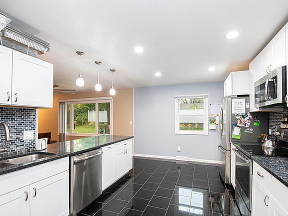 Fully Remodeled! New hardwood & tile flooring, fresh paint, repaved driveway, high end lighting, , ceiling fans and smart security system. Open concept great room w/ lighted built ins and bay window offering tons of natural light. Custom kitchen w/ granite breakfast bar, pendant lighting, marble flooring, stainless steel appliances and new cabinetry. Main bath adds mosaic tilework, high end fixtures and a deep soaking jet & air tub. Brand new rec room w/ stadium seating theater room. Theatre room can be converted to 5th bedroom. Lower has a full bath with air/jet tub, large bedroom with a huge walk in closet and egress window for safety. Upgraded 200 amp electrical, 2 sump pumps. New roof,windows, security and entry doors, concrete walks and patio. 2.5 car garage with smart door opener.