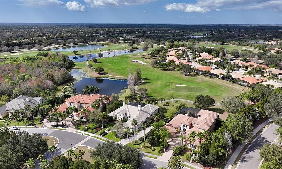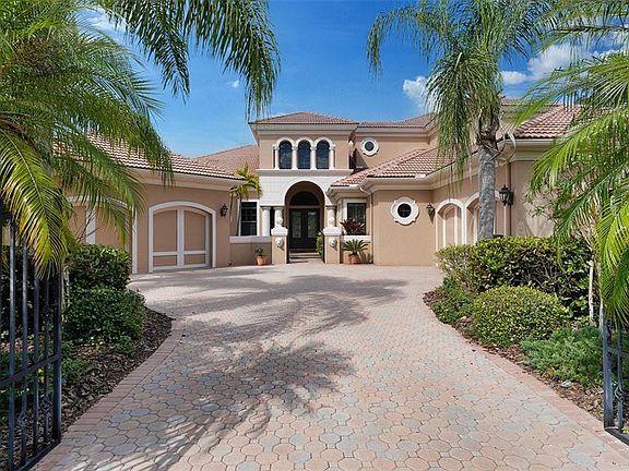 Live. Work. Play. This exceptional Arthur Rutenberg home offers a space for all three. LIVE: This private home is set back from the road behind the wrought iron gates and features 5 bedrooms, 5 full bathrooms, and 2 half bathrooms plenty of space for the family and perhaps a guest or two on occasion. The four-car garage can house a family of cars (or the cars of one enthusiast). Meals and gatherings are a delight in the kitchen featuring a Wolf 6-burner gas range, wall oven with microwave, and a subzero refrigerator surrounded by wood cabinetry and granite countertops. The spacious master bedroom is on the ground level with pool access and features an en suite bath with dual vanities, a walk-in shower, and a spa tub. Also on the ground level are two more bedrooms with baths en suite. WORK: If you work from home you will have a true workspace. The office has a custom built-in desk, file drawers, shelves, wood flooring, plantation shutters, and maybe most importantly lovely glass double doors. PLAY: This home is light and bright with beautiful details such as crown molding, coffered ceilings, thoughtful built-ins, large windows to keep things bright, and pocketing sliders that lead to the pavered pool area complete with a heated pool, wading pool, spa, and outdoor kitchen. The bar is just inside and plenty of space for dining and lounging with friends and family. Upstairs is a large space that could be used as a media/game room, craft room, or whatever else you might imagine it also features a bar area and an additional two en suite bedrooms. All of this in one beautifully landscaped home overlooking one of the finest golf courses in one of the most sought-after communities in Florida. Just minutes from downtown Lakewood Ranch, medical facilities, and numerous restaurants a short drive to an international airport, museums, theaters, and all that Bradenton and Sarasota have to offer. Make your move today.