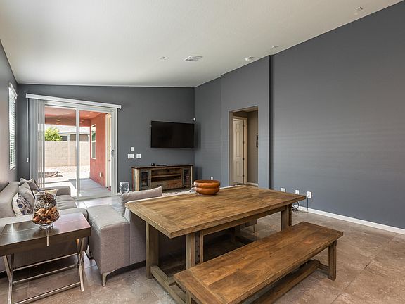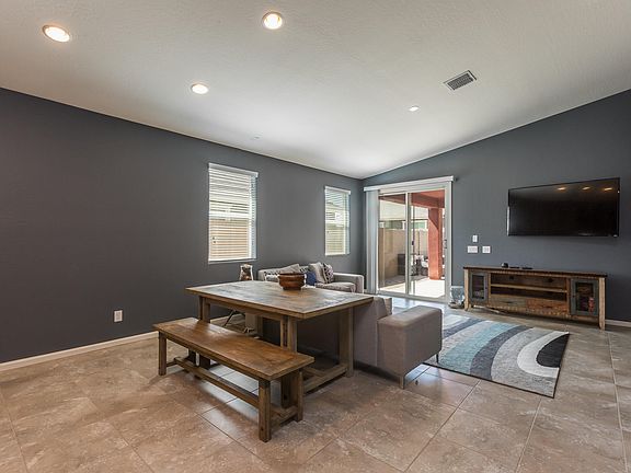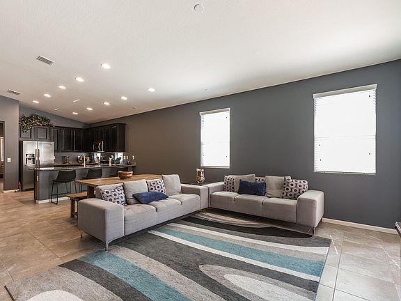 This like-new home in Morrison Ranch offers 5 bedrooms & 3 baths in 1947 SqFt with an open great room floor plan. The nicely upgraded kitchen features 42'' espresso maple cabinetry with crown molding, granite countertops, gas range, stainless appliances, breakfast bar & pantry. Sliding doors lead out from the great room to the covered patio, extended paver patio & grass backyard. The master bedroom has double door entry, vaulted ceilings & private bath with dual sink vanity, oversized shower with bench seating & walk-in closet. One secondary bath also has double sinks & the 3rd bath is near the entrance & the 5th bedroom; perfect for guests! Other features: 2 car garage, large laundry room, coat & linen closets & much more! See today!