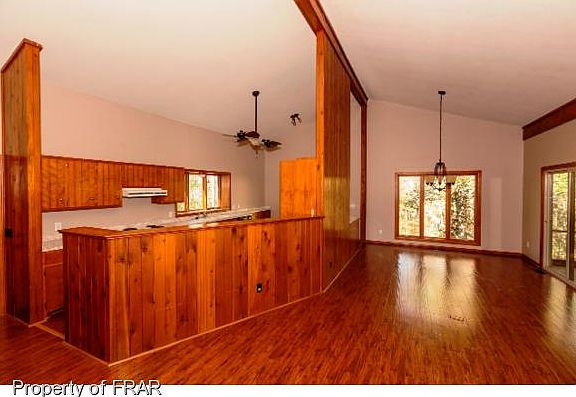 -Beautiful wooded lot with circular drive. Water Views, end of Cul De Sac. Very open floor plan with vaulted ceilings. Loads of counter space in kitchen which is open to the LR & DR. Open rear deck leads to screened porch overlooking water views. Third bedroom can double as an office with built-ins. Attractive wood burning fireplace.