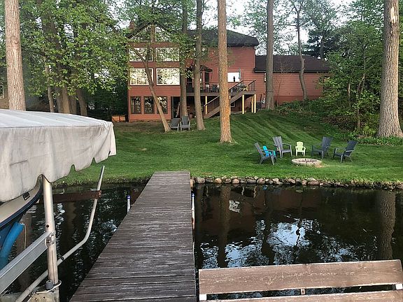 It's a lakeshore liftestyle-skiing, boating or water-ski! Private lake with 92' of sandy lvl shoreline-this is a retreat. Wonderful flr plan w/great rm, large KT, 4 BRs up & 2 frplcs. Vaulted west-facing sunrm, w/o bsmt all surrounded by towering trees Neighborhood Description Wonderful neighborhood with trails around lake, many families, and great association for the lake owners.