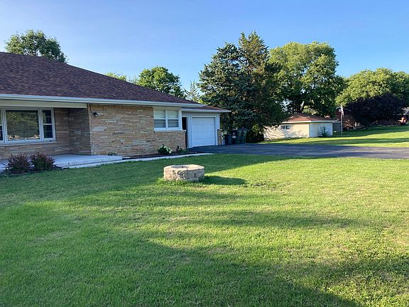 5 car garage, spacious ranch, water front and garden shed for all of your needs. Eat in Kitchen with hard surface counter tops and center island and living room with brick/stone fireplace and dining rm, both with large picture windows and beautiful view of Blackberry Creek and forest preserve on other side to stop future growth nearby for privacy. 2 car attached garage and detached 3 1/2 car garage (34 x 24) with electric. Office/sitting room, 3 season room on back of home with access to large 2 car garage. Back covered porch to fenced yard. Basement walls fully encapsulated for moisture and drainage tiled installed under inside of basement to sump. New well tank and pump 2022, new front sidewalk and roof 2021.