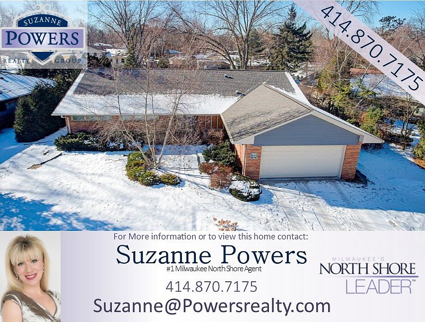 Stately updated all brick ranch on large professionally landscaped lot in the heart of Fox Point! Slate floor entry into Great Room w/ electric fireplace. Modernized kitchen (2015) w/ quartz countertops, Bosch DW, Samsung 5 burner stove, breakfast area and pantry.Spacious master bedroom and en suite bath with slate shower. 1000sqft+ of Finished LL rec room with additional fireplace & room for expansion. 2 Car attached heated garage w/ new poured concrete floor. Play area and tire swing perfect for relaxing afternoons. Walking distance to elementary, farmers market, and Fox Point Pool!