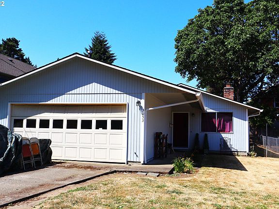 Adorable one level with 3 bedrooms. Beautiful wood floors, open floor plan. Fireplace in Living room. Primary with 1/2 bath. Newer roof (appox 1 yr) 2 car LARGE garage (area to make more living space) Hard to find a home like this at this price!! Blocks to Neighborhood Park! Close to I-5, restaurants, etc.Why rent when you can own this lovely home! Fenced yard with Patio. Hurry on this one!! [Home Energy Score = 5. HES Report at https://rpt.greenbuildingregistry.com/hes/OR10204782]