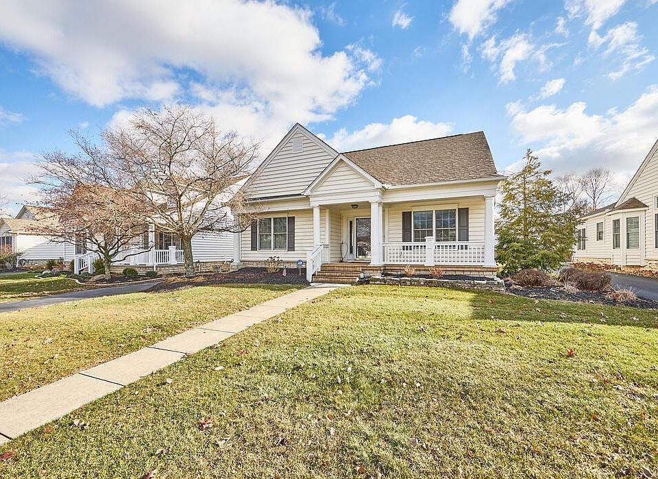 Welcome home to this lovely cluster home with large welcoming covered front porch. One the original model homes three lots away from the Dominion Clubhouse with pool and a short stroll to the main New Albany Links Clubhouse. Wide open first floor plan, with kitchen, great room and casual dining. Formal dining room and office/den/BR+BA #2. Large master suite and walk in closet. Lower level has recreation room and another full bath with make great extra guest space for family and friends. And double storage areas. Less than a mile from the Rocky Fork Metro Park with dog park, as well as Bevelhymer park to watch all of your grandkids sporting events. Approx. two miles to New Albany Village Center amenities. Low condo fee only 125/mo. Seller is licensed real estate agent in the State of Ohio.