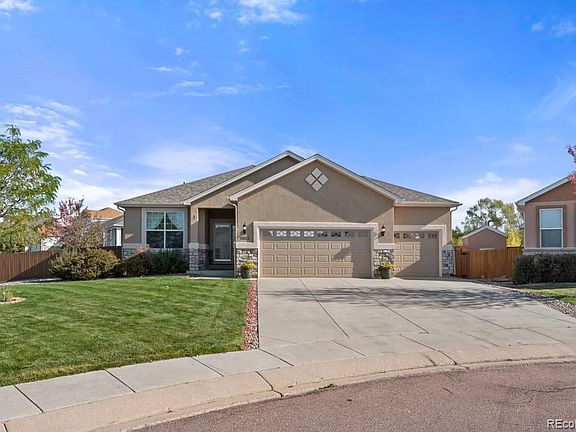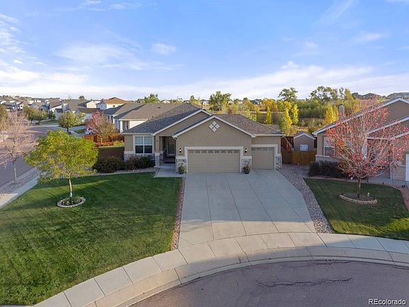 Meticulously maintained and remodeled rancher located on over a quarter acre in a quiet cul-de-sac with open space behind. Over 3,100 sq ft with a 3 car attached garage, central air conditioning, gorgeous full landscaping with flowers, trees, bushes and rock gardens. Huge backyard. Tons of outdoor living space for entertaining with a full stamped/stained back and side patio. Inviting great room with vaulted ceilings, hardwood floors, architectural niches, large windows for tons of natural light and gas log fireplace with custom stone surround and wood mantle. All floors are solid surface with no carpet. Open concept dining large enough for a 6 seat dining table with a beautiful high end chandelier. Fully remodeled kitchen with upgraded cabinetry, pantry, solid surface counters, stainless steel appliances. Master suite with hardwood floors, 5 piece master bath and a walk-in closet with hardwood floors. Main level living with 3 bedrooms, 2 baths and laundry on the main level. Very little maintenance on the exterior of the home. Newer upgraded roof, stucco and stone exterior. New lighting throughout. Room to grow in the unfinished basement with room for additional bedrooms, entertainment area and rough-in for an additional bath. Newer roof, garage doors, lighting, water heater, stucco/stone, appliances and flooring throughout. Stucco storage shed. High speed internet and cable available. Great location with quick access to the amenities of Powers, Woodmen and near St Francis Hospital North. Check out our 360 Matterport virtual tour! See this home quickly!!