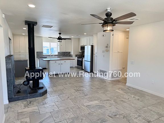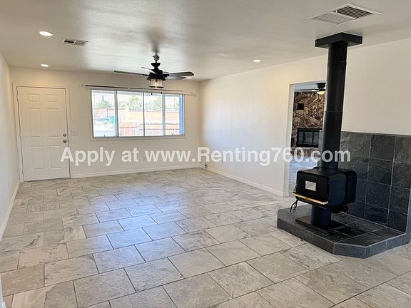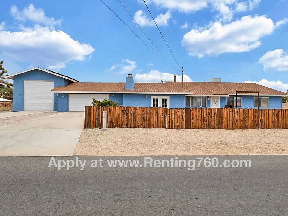 This home is being offered for rent by southern Cal Property Management in Yucca Valley SHOWINGS: Call the office to schedule a showing or schedule directly on our website. 833-RENT-760. APPLY: Please submit an application directly on our website which is in each photo. Looking for a home with lots of space? This spacious 4-bed, 2-bath home is a perfect blend of comfort and convenience. Located a short drive from the famous Pioneer Town and the new Aquatic Recreational Center which is great for exercise. The updated kitchen, equipped with new stainless steel appliances, is a chef's dream. The home features a central AC system, private laundry facilities, and a walk-in closet in the primary bedroom for ample storage. The new luxury vinyl plank flooring and recessed lighting adds a touch of modern elegance to the home. For those who love the outdoors, the property includes RV parking and hookups, and a 2-car garage, as well as an additional RV garage for those who need a workshop. The home is conveniently located near downtown and shopping centers, making your daily errands a breeze. The property is also pet-friendly, so your furry friends are always welcome. The home is energy-efficient with solar panels so say goodbye to expensive electric bills, and has a cozy fireplace for those chilly evenings. Experience the perfect blend of space, comfort, and convenience in this Yucca Valley gem. Southern Cal Property Management lic:02203102