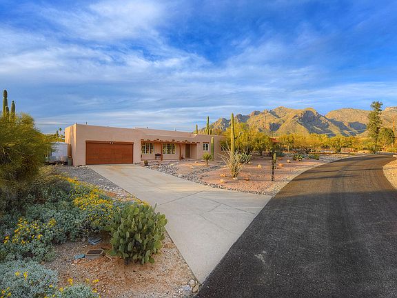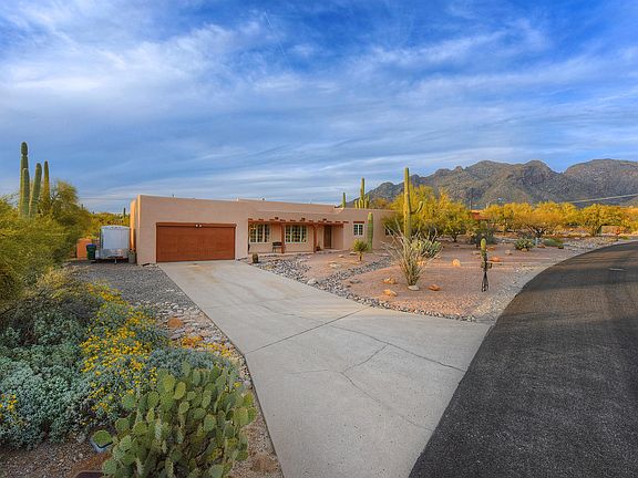 Charming District 16 Southwestern / Santa Fe home with sparkling pool. Four bedrooms, four bathrooms and a nice floor plan with beam and cedar ceilings in living room, family room, and dining room. French doors and access to covered patio in backyard with majestic Santa Catalina Mountain views. Jack & Jill bathroom, Pella windows, Mexican tile, two wood burning fireplaces, plenty of storage and pride of ownership make this a desert gem. Storage, work bench area off garage, extra parking off of driveway near garage, built-in BBQ, newer water heaters, Two HVAC and two evaporative coolers, new roof coating and exterior paint. Fantastic location with easy access to stores, schools, restaurants, shopping, and more on a cul-de-sac street.