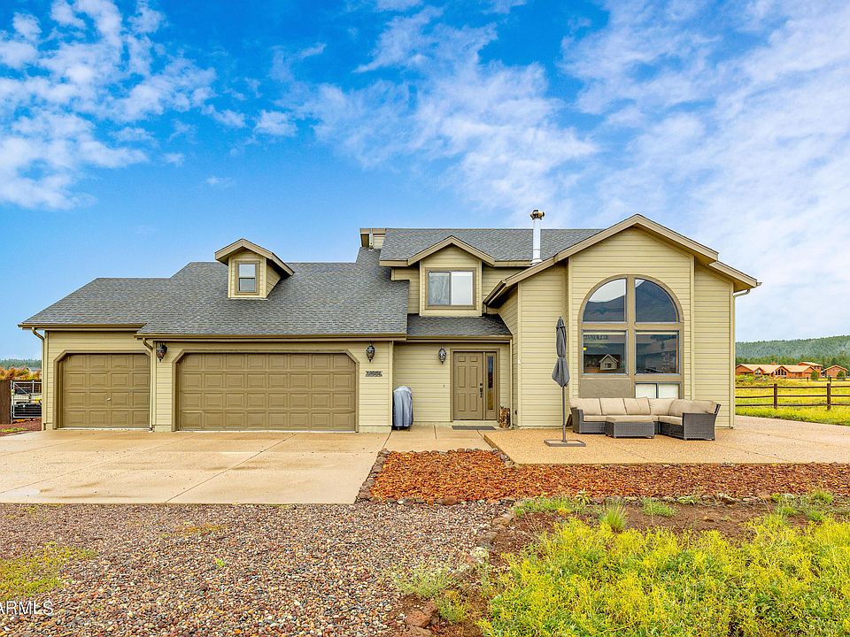 **Seller offering $10,000 toward closing costs if an offer is received by June 19th. Location, Location, Location! Only twenty minutes to the lifts at Snowbowl and 15 minutes to historic downtown Flagstaff! Enjoy the panoramic views of the San Francisco peaks from the enjoyment of this cozy mountain two story home! Lots of room to roam on a 2 acre corner lot with a three car heated garage! The area features nice paved roads and NO HOA. This 3 bed, 2.5 bath home offers an inviting living space w/ the mountain views right from the large living room windows! Inside offers vaulted ceilings with tongue & groove wood detail. Two fireplaces help heat the home in the winter. All three bedrooms are upstairs and feature views of the area! Paved roads and on a well! Wood burning fireplace added recently and helps heat the whole house. Some furniture available outside of escrow. On Natural Gas too.