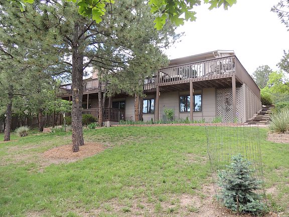 Beautiful Rockrimmon area rancher on over a 1/4 acre mature treed lot. Wake up to coffee on the 2 story wrap around deck overlooking the entire southern mountain range. 2 Wood fireplaces and enjoy the abundance of wildlife all throughout the neighborhood. Main level living with larger doorways, this 4 bedroom, 3 bath beautiful custom built home has plenty of room for any occasion! Minutes away from I-25. 2 block walk to award winning District 20 elementary school. Walking/running/riding trails throughout community.