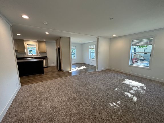 This home is the DREAM LOCATION. On a end lot right next to the forest, this 3 bed 2 bath home won't be here long! This home is 1,456 sqft and currently being set now. Expect a new concrete driveway soon. This home is a large open floorplan with carpet and modern wood like vinyl flooring throughout. The kitchen has a large island that will be perfect for cooking and entertaining. It has stainless steel appliances including a refrigerator, gas stove, and dishwasher. There is also a separate area with washer and dryer hookups. This home will be ready to view soon. Apply now to get a preapproval!