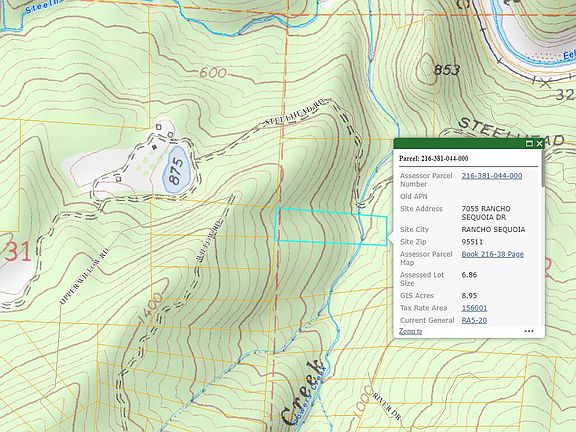 Tucked near the end of a well-maintained road, this serene property is bordered by Powers Creek. With flat terrain and beautiful valley views, it offers easy access from Steelhead Road NOT in Rancho Sequoia. PG&E lines run through. Small cabin was hit by trees. Cash only purchase. No septic or Power. Must have proof of funds to view.