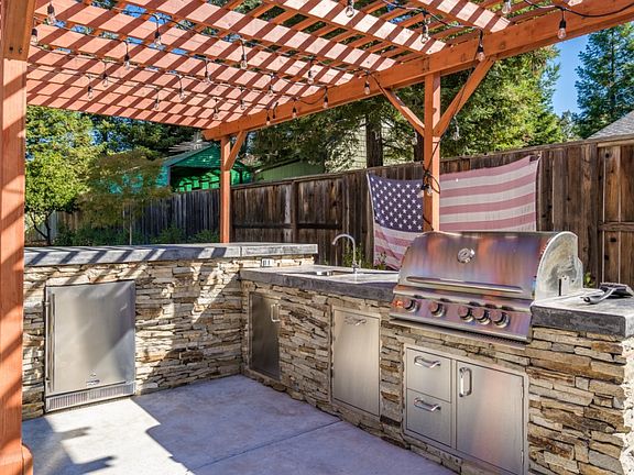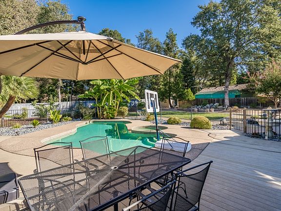 This 2,160 square foot single-story SOLAR home features 3 spacious bedrooms & 2.5 bathrooms and AMAZING outdoor living on this 0.46 acre lot! Entertainers will love the extra-large yard space featuring fenced pool, outdoor kitchen with BBQ, refrigerator, sink and slab concrete counter, under a beautiful redwood pergola. Wood-burning firepit, covered patio, raised planter box, room for RV/boat parking. Eat-in kitchen opens to family room w/ slab granite counters, slate stone backsplash, Moen granite sink, and KitchenAid appliances. Master bed and bath with direct access to backyard, walk-in closet, soaker tub, quartz countertops, and pebble tile floor shower. Stacked stone fireplace w/ custom redwood live-edge mantle in living room. New HVAC in 2016 and newer Milgard windows! Whole-house fan, finished 3-car garage & ample storage! Folsom Lake Recreation Area plus hiking/biking trails minutes away. Convenient to shops and amenities. Eureka & Granite Bay High School districts.