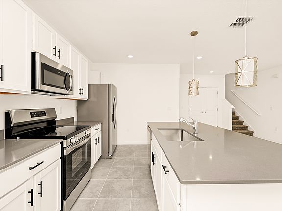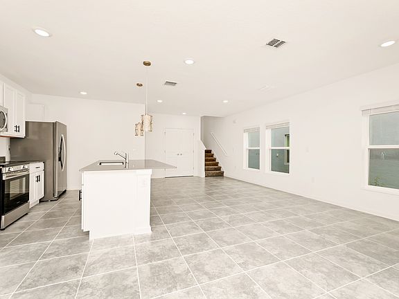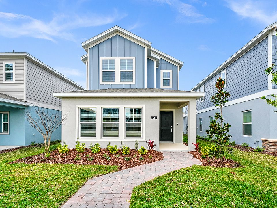 Welcome to your new home at EverBe! This three bedroom, two and a half bath single family home is BRAND NEW CONSTRUCTION and ready for move in! Upon entering, you are welcomed into the spacious kitchen overlooking the living and dining area. The kitchen features a full suite of stainless steel appliances including the refrigerator, range and over the range microwave as well as plenty of cabinetry and counter top space. Enjoy hosting family and friends around your kitchen island. The half bath is located on the first floor. The primary suite is spacious, with a walk in closet and private access to the primary bathroom which features dual vanities, a glass enclosed standing shower and separate water closet. Both additional bedrooms are well sized, with easy access to the second full bath featuring a shower tub combo. Rounding out this home is the covered patio, two car garage, spacious driveway and the interior laundry room with included full sized washer and dryer. Living in EverBe means you are part of a master-planned community that seamlessly blends convenience and connectivity. You'll enjoy easy access to highways 417 and 528, as well as a rich array of amenities. These include miles of scenic pathways and trails, Wi-Fi-enabled green spaces, unique outdoor recreation areas, a state-of-the-art fitness center, a clubhouse complex featuring a resort-style pool, and a stunning waterfront amenity and town center. Experience the lifestyle you've always envisioned in EverBe, where everything you desire in a home is within reach. No Smoking allowed