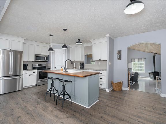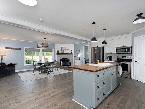 The home is single level living and almost all of it has been remodeled including a beautiful, custom, open concept kitchen with granite counter tops, slow close white wood cabinets, pantry, kitchen island with farmhouse sink and butcher block counter, and stainless appliances! The great room is something to see. It was an addition to the original home and is the seller's favorite room in the house. It features engineered hardwood floors, vaulted wood ceilings, recessed lighting and a wood burning stove. This home is perfect for entertaining but equally cozy for just hanging out with your family!
