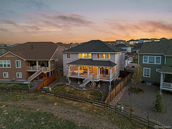 Nestled in the heart of Castle Pines, this exquisite 5-bedroom, 6-bathroom residence offers a harmonious blend of elegance and functionality. Designed for modern living, the home features a gourmet kitchen equipped with top-of-the-line appliances, a spacious walk-in pantry, and a butler’s pantry—perfect for culinary enthusiasts and entertainers alike. The main level boasts a formal dining room, a cozy living room with a gas fireplace, and a private office ideal for remote work. A guest suite provides comfort and privacy for visitors, there is also an additional powder room located on the main floor. Upstairs, the luxurious primary suite impresses with tray ceilings, crown molding, a generous walk-in closet, and dual sinks. Conveniently, the suite connects directly to the upstairs laundry room. Two additional bedrooms share a Jack and Jill bathroom, while a fourth bedroom features its own en-suite bathroom, ensuring ample space and privacy for all. The finished basement offers versatile space for entertainment, fitness, or relaxation, with the potential to add an additional bedroom to suit your needs. Outdoor living is elevated with an expansive deck equipped with a built-in gas grill, ideal for entertaining and enjoying Colorado’s beautiful weather. The property backs to serene open space, offering tranquility and picturesque views. Additional amenities include an attached two-car garage, and a separate single-car heated garage, accommodating vehicles and storage needs. Located just minutes from several schools, parks, and shopping, with easy access to I-25 (5minutes), downtown Castle Rock (10 minutes), the Denver Tech Center (15 minutes), and Denver International Airport (35 minutes), this home combines luxury living with unparalleled convenience.
