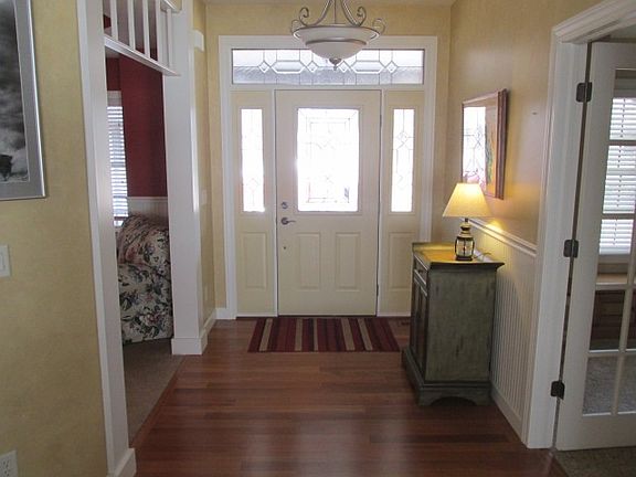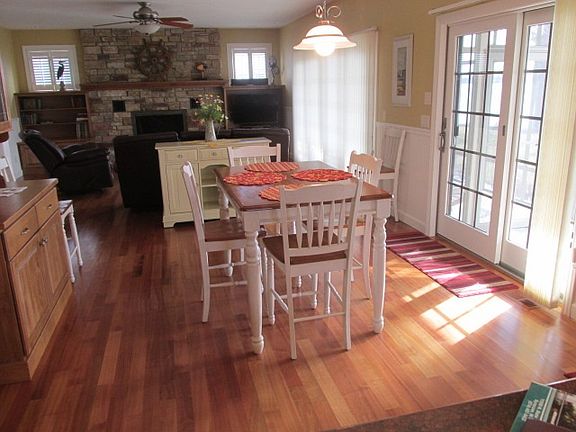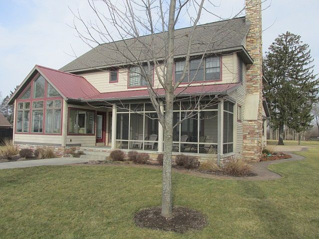 Wawasee lakefront 87' frontage, 3372 sq.ft.' living space, 5 bedrooms, 3 baths, and full unfinished basement. Cherry hardwood floors throughout, custom cabinetry, granite counter tops, wood-burning fireplace in living room, 4 car heated garage with storage, screened-in porch and an enclosed sun room overlooking Lake Wawasee! BONUS FEATURE: Lakefront storage and patio on top! Includes 100' x 323' back lot!