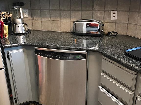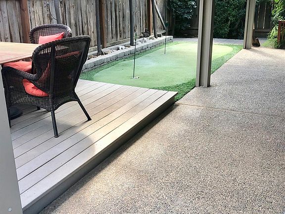Fantastic gated Northridge Terrace Townhouse. 2 bedrooms, master downstairs, 2nd one upstairs along with a large loft, which could be used for many purposes. Both bedrooms feature their own bathrooms plus a half bath downstairs for guests. It is rare to find this many updates and uniques features. Designer kitchen with new SS appliances & gas stove. All cabinets updated with designer gray aggregate floors, all counters granite with new SS sinks, fixtures. shower glass, all add to the appeal of this property. Living room has dramatic, beautiful dark hardwood flooring, track lighting & fireplace leading to newer French doors to back patio. Patio has been extended, to include a raised sitting area and a 3-hole putting green. 2 car garage, indoor laundry, air conditioner 4-years old