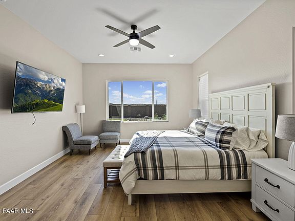 Enjoy the peace and tranquility that this stunning 2022 built home offers - situated on a large elevated lot with gorgeous views from front and back in the idyllic community of Deep Well Ranch.Dorn Homes popular three bedroom plus office and 2.5 bath Monarch plan is loaded with beautiful features including vinyl wood flooring and quartz counters throughout, full overlay and soft close cabinetry, gas range/oven, additional canned lighting, gorgeous primary suite with luxury free standing tub, spacious shower with rain shower overhead and frameless doors, handsome beams in great room, fireplace with stone surrounds in great room, 20 AMP service in insulated garage, belt driven garage opener, owned soft water, and water recirculating pump. Exterior amenities include a covered