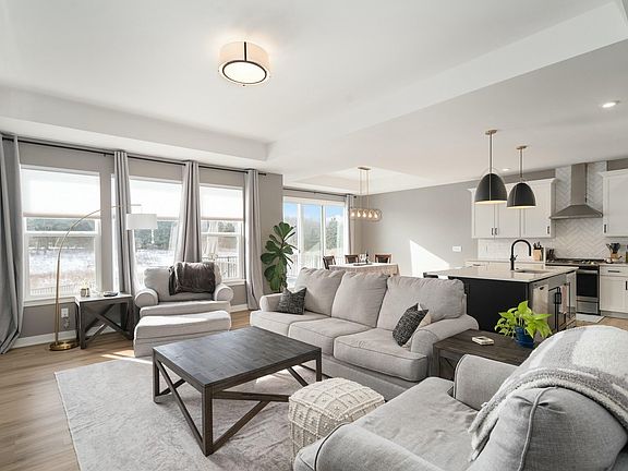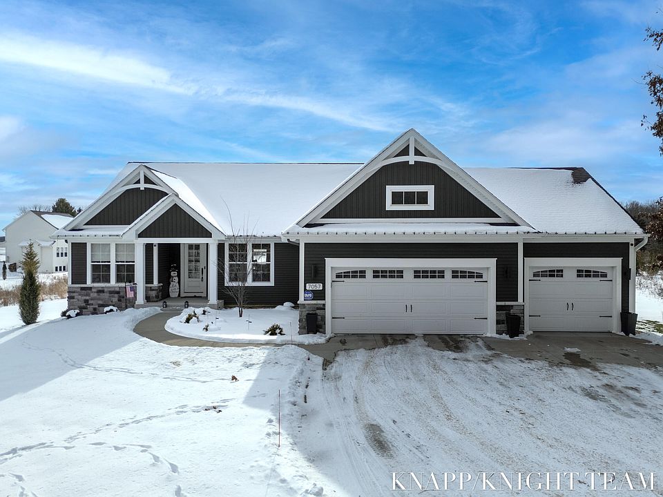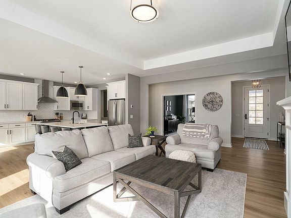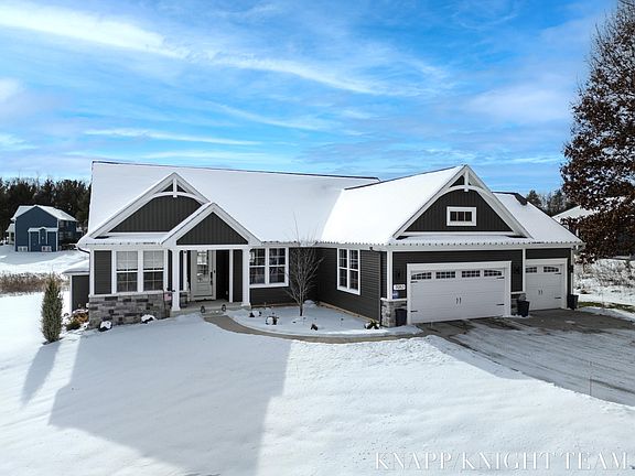 Welcome home! This stunning 4-bedroom, 3.5-bath ranch is nestled on 1.4 acres in the Marshes, an exclusive enclave of just 12 homes in Texas Township, located within the highly regarded Mattawan Schools District. As you enter, you're greeted by an open floor plan that effortlessly blends the great room, kitchen, & dining area. The kitchen is a true centerpiece, boasting quartz countertops, a herringbone backsplash, under-cabinet lighting, stainless appliances, a wine cooler, pantry, & so much more! The adjacent dining area features a slider leading out to the backyard; perfect for entertaining. The great room, anchored by a custom fireplace, boasts stunning tray ceilings & large windows that fill the space with natural light, offering scenic views of the surrounding landscape. The private primary suite is a luxurious retreat, complete with blackout blinds, a walk-in closet featuring a custom system by Dave's Glass, & an ensuite bath with an oversized freestanding tub. Plush, upgraded carpet with premium padding adds comfort throughout. The main floor also includes two additional bedrooms, a family bath, a half bath, & a convenient office space.The finished lower level is a true entertainer's paradise, featuring a dark-themed wet bar with a beverage fridge, a golf simulator, & a cigar room. This space also offers an additional bedroom, a full bath, & flexible living areas; ideal for hosting guests or enjoying leisure time. Step outside to the fully fenced backyard, where wrought iron detailing enhances both privacy & charm. The composite deck provides the perfect spot for outdoor gatherings. Plus, take advantage of the private walking trail that meanders through over 7 acres of shared green space.
