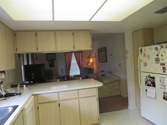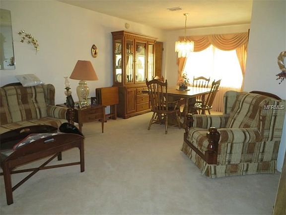 RIDGE MANOR WEST BEAUTY! This immaculate 2/2/2 home invites you to relax! Immaculate inside and out, this home has a wonderful floor plan with a welcoming entry foyer, L shaped living and dining and a bright and sunny fully equipped kitchen which opens into the Florida room. The bedrooms are split - this is great for privacy, and the inside utility room is oversized with a window and a handy utility sink. The washer and dryer will be included in the sale as well. In the rear is a screened lanai with plexiglass windows. The 2 car garage is complete with a garage door opener, attic access with stairs and double screens over the door so you can enjoy fresh air while using the built-in workshop! The lawn and shrubs have the benefit of a sprinkler system. This home is in a great neighborhood, convenient to shopping and I-75, and there are no required fees. The new buyer will receive a 1 year home warranty as a gift from the seller. MAKE IT YOURS FOR $109,000!