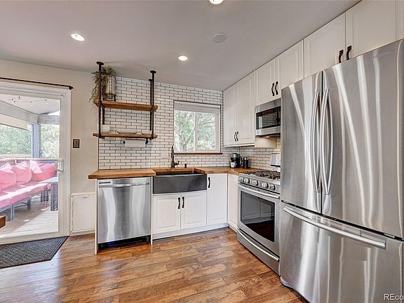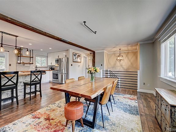 Welcome to this beautiful and meticulously maintained home located in the desirable community of Columbine West in Littleton. 3 bedrooms, 2 bathrooms plus a family room. Enter the foyer and step up to a mosaic of modernity, texture and color. An open great room/kitchen is the perfect place to unwind and gather for intimate or larger living styles. Modern, stylish, spacious and functional kitchen featuring custom sold walnut countertops, soft-close white cabinets with under-cabinet lighting, backsplash and a skirted vessel hammered black-hued copper sink! All upscale stainless appliances included. Walk out from the kitchen onto a large, private raised back porch extending the living space outdoors. Perfect for al fresco dining and relaxing by a fire pit table. Large primary bedroom in the lower level with a walk-in closet. 2 remodeled bathrooms - one with a very cool smart mirror. Storage and closets. Radon system in place. Programable thermostat. Large woodworker's workshop adjacent to the garage. The landscaped backyard is an oasis of a variety of mature trees, shrubs, gardens with a large storage shed. Large canopy pergola on wooden patio for outdoor entertaining, dining and fun! Front and back yard sprinkler system. RV parking! Area getting wired now for fiber optic internet access. Super convenient location. Close to schools... easy walk to Dutch Creek Elementary, and Columbine West Park with the coming-soon pool. Minutes to Coal Mine Shopping Center, Southwest Plaza, Clement Park/Johnson Reservoir & Chatfield State Park & Lake!