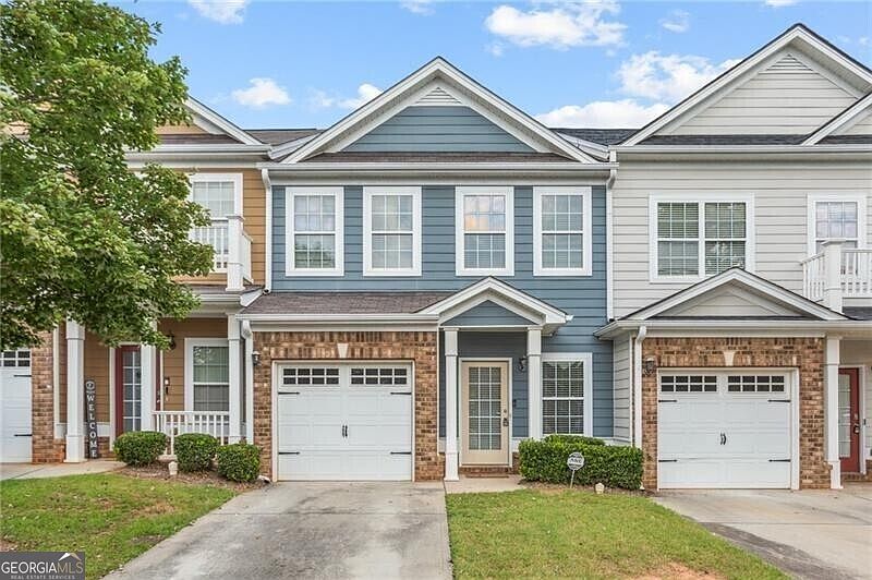 Discover the epitome of comfort and style in this exquisite 3-bedroom, 2.5-bathroom townhome that embodies contemporary living at its finest. Immerse yourself in the allure of fresh aesthetics, as this abode boasts new paint, plush carpeting, luxury vinyl plank flooring, and a state-of-the-art HVAC system, ensuring a move-in-ready experience. Step into the inviting open-concept layout of the main level, thoughtfully designed to accommodate seamless entertaining and daily living. A haven of relaxation awaits on the second floor, where an expansive owner's suite beckons. Revel in the grandeur of tray ceilings while luxuriating in your private escape. The suite indulges you with a generously sized walk-in closet and an opulent full bath, complete with a separate shower and a soothing garden tub. Experience the convenience of a private garage, offering both security and ease of access. Delight in the serenity of your own private patio that extends to a spacious grassy yard, creating a perfect oasis for outdoor enjoyment. This townhome is strategically located just across from the pool and clubhouse, enhancing your leisure and social activities. Ideally located with proximity to I-20 and I-285, your connectivity to the city is great. Savor the ease of dining and entertainment options at Camp Creek Marketplace, and relish in the vibrant atmosphere of the nearby Wolf Creek Amphitheater. FHA eligible.