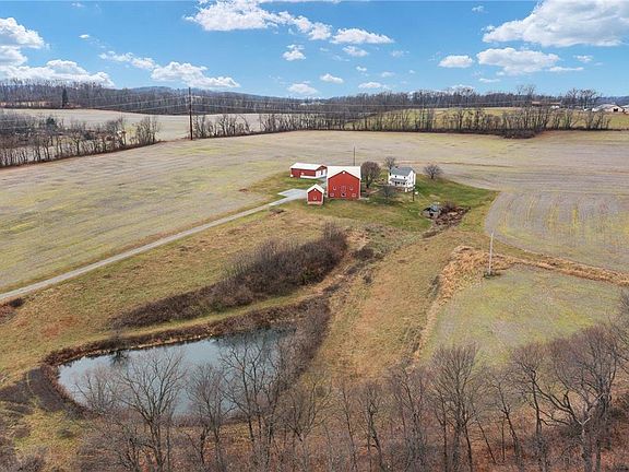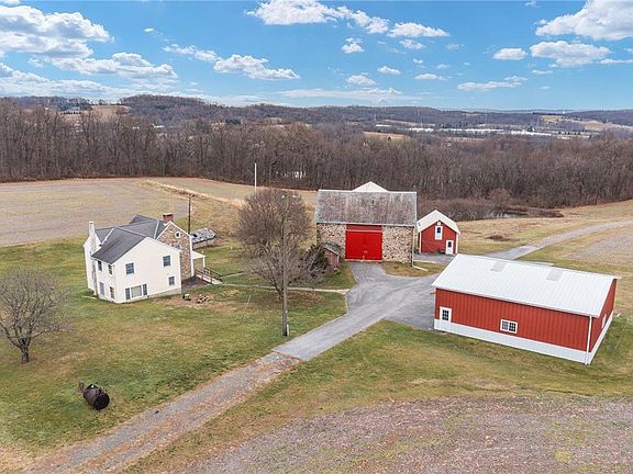 Nestled in the middle of nearly 49 beautiful acres, this stone and log farmhouse was likely built in the 1770’s (with a circa 1860 addition and a 2nd high-quality recent addition), a grand bank barn and a recent 36x40 Morton Pole building.  At the end of a long private driveway past a large pond, the home is not visible from the road. Featuring an original stone fireplace with stove insert, exposed logs, open ceiling beams, living room with staircase, family room, kitchen/dining room, 3 bedrooms, and 2 full baths. Sit on the covered front porch which overlooks the beautiful countryside. The magnificent stone bank barn is in excellent condition with a cold storage room and office on the lower level.  The Morton building has several high doors, a concrete floor and high ceilings.  You’ll also find an 18x26 workshop. This is an exceptional, land preserved country property ideal for horses or fine country living.