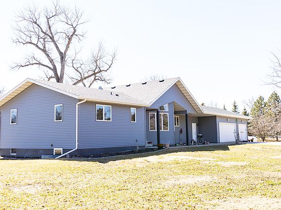 Beautiful custom built home with 4 bedrooms, 2 non-conforming bedrooms, 3 bathrooms, 3 stall garage, and LOADS of storage and living space in the Misty Waters neighborhood of northwest Bismarck. As you enter you'll notice large windows that bathe the living room and formal dining room with natural light and you're sure to fall in love with the eat-in kitchen with custom cabinets and long counters which provide plenty of room to prepare and entertain. On this level you'll find the primary bedroom with large closets and 3/4 primary bath with marble shower! This level is also home to 2 additional bedrooms, full bath, and laundry room. Head to the basement for more living space! Here you'll find the 4th bedroom, 2 non-conforming bedrooms, a rec-room, family room, full bath, and a very large storage room. The home sits on 1.76 acres and is equipped with a patio and storage shed, 3 apple trees, 1 crab apple tree, 1 apricot tree, and choke cherries! A gardener's dream! The home has only had one owner and has been well cared for and loved! Don't miss your opportunity to enjoy country life while still living close to the city! Call for your showing today!