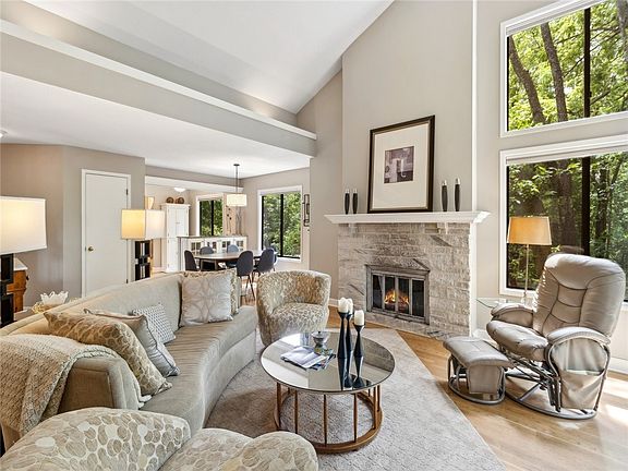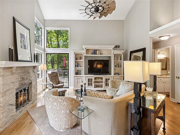 Updated ranch walk-out townhome, in the private serene Oak Brook neighborhood surrounded by mature trees, nature and a tiny bubbling brook. The home has 2,458 SF of total finish, 3 bedrooms, 3 bathrooms and a 2 car attached garage. This is an open floor plan with a vaulted ceiling in the living room with beautiful hardwood floors, gas log fireplace and with large windows letting in great natural light. There is a wrap around deck with views of wooded trees and the brook. The fully remodeled kitchen off the dining area features custom white cabinetry, quartz countertops, backsplash, eat-in breakfast nook and all appliances included. There is a mudroom and laundry area off kitchen. Down the hallway from living room you'll find the first bedroom/study with french doors. The primary-bedroom is spacious with beautiful views, walk in closet and a bathroom suite with tile shower and vanity. Lower level is finished with 2nd family room with wood burning fireplace, 3rd bedroom, and full bathroom. Cats and dogs are permitted. No weight limit.