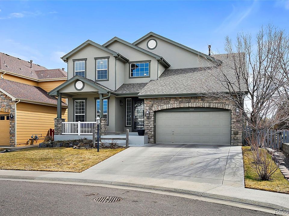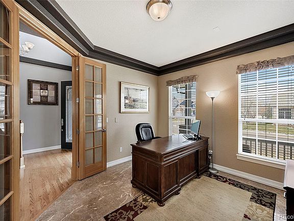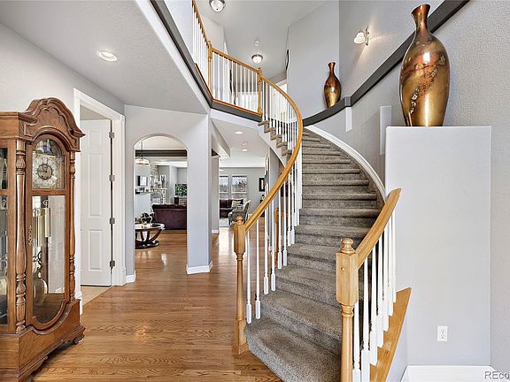 This home offers a vaulted entry with a beautiful staircase, wood floors throughout, a main floor office, living room or dining space, and a large family room with lots of light that extends nicely into the beautifully updated kitchen with stainless appliances, a pantry with eat-in space, and plenty of room to entertain with a large granite island. Upstairs includes a guest suite and two additional bedrooms that share the hall bath. The lovely primary retreat occupies an upper deck to enjoy the sunsets. The primary bath has a shower and soaking tub as well as plenty of room for your wardrobe with a huge walk-in closet. The easy-maintenance backyard features a large patio to take in the beauty of the mountains and surroundings. This home is complete with a beautiful professionally finished basement with a wine cellar, bar, entertainment area, and a bedroom and bath. Close to shopping and schools and next to three parks with trails. Easy commute to Wadsworth, 470, DTC. Pet free and pristine!!